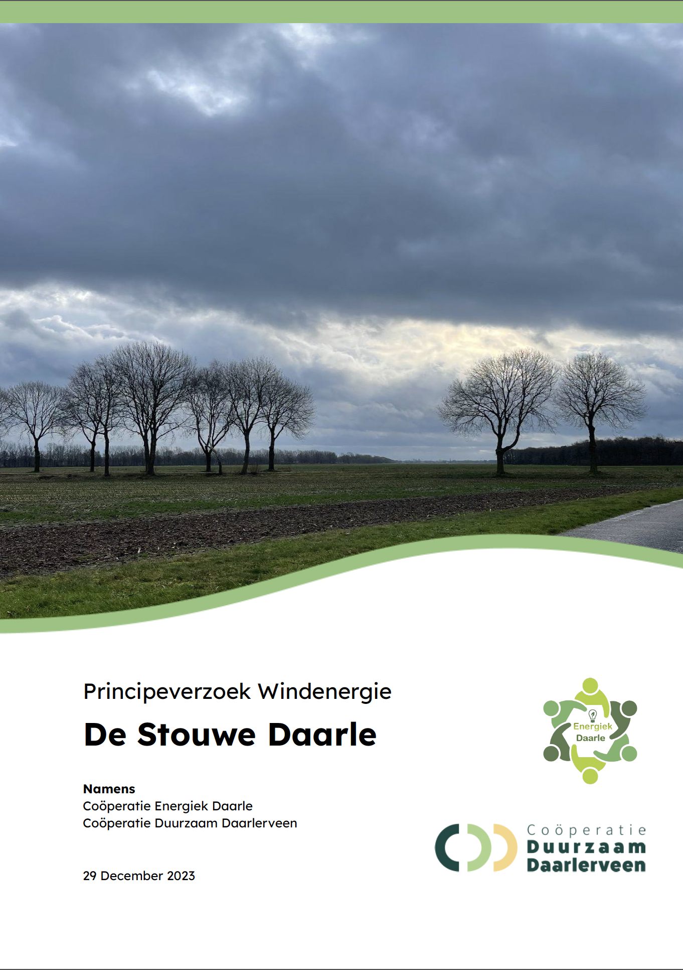 De energiecoöperaties van Daarle en Daarlerveen hebben gezamenlijk een principeverzoek ingediend bij de provincie Overijssel voor de bouw van windmolens in de gemeente Hellendoorn. “De komst van windmolens lijkt onvermijdbaar, dan maar beter in eigen beheer met 100% lokaal eigendom”, aldus de coöperaties.